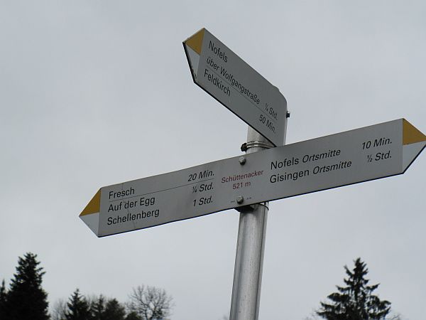 Der Schellenberg ist eine ca 650m hohe Erhebung im Rheintal und zieht sich von Feldkirch Richtung SW an die schweizer Grenze. Die Wanderung beginnt im Feldkircher Stadtteil Nofels an der Kirche und endet in Feldkirch-Bangs. Zwischen Start und Endpunkt kann man mir dem Stadtbus Linie 4 (am Wochenende Linie8) im 1/2 Stunden Takt fahren. Parkmöglichkeiten gibt es sowohl am Ausgangspunkt als auch in Bangs.