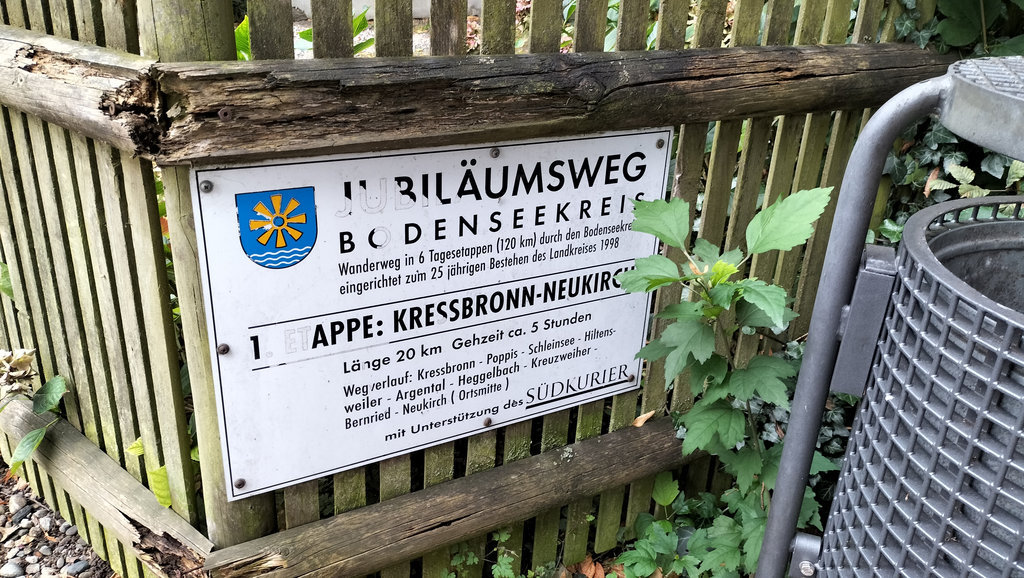 Der Jubiläumsweg beginnt unspektakulär – und genau das macht ihn so angenehm. In Kressbronn am Bodensee, direkt am Ufer des Bodensee, ist noch alles weit, offen und vom Wasser geprägt. Spaziergänger, Radfahrer, das leise Klatschen der Wellen. Doch schon nach wenigen Kilometern wird es ruhiger. Der See verschwindet langsam aus dem Blickfeld, und mit ihm auch die Betriebsamkeit.