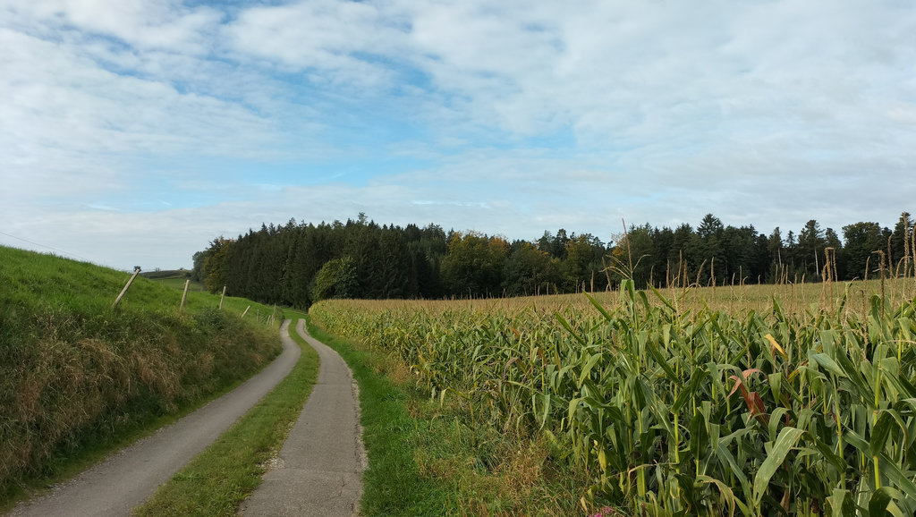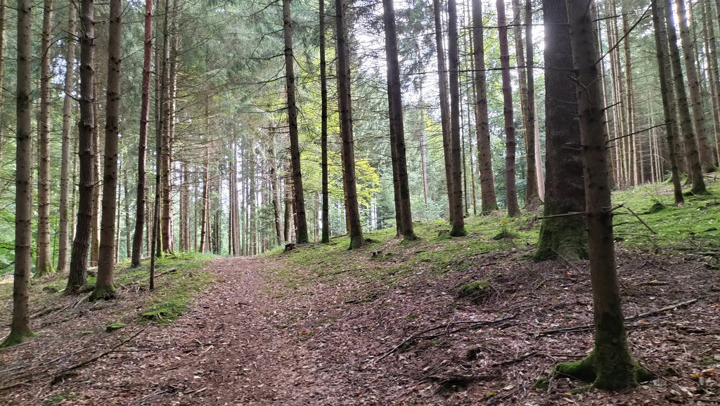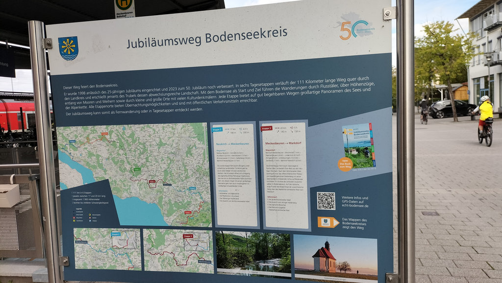 Mit der zweiten Etappe ab Neukirch wird es stiller. Die Wege führen oft durch Wälder, längere Abschnitte ohne Orte, ohne Einkehr. Es ist eine Etappe, die man fast „für sich“ hat. Der Wechsel zwischen Wald und offenen Passagen wirkt ruhig und gleichmäßig, fast meditativ. Erst zum Ende hin, Richtung Meckenbeuren, öffnet sich das Gelände wieder.