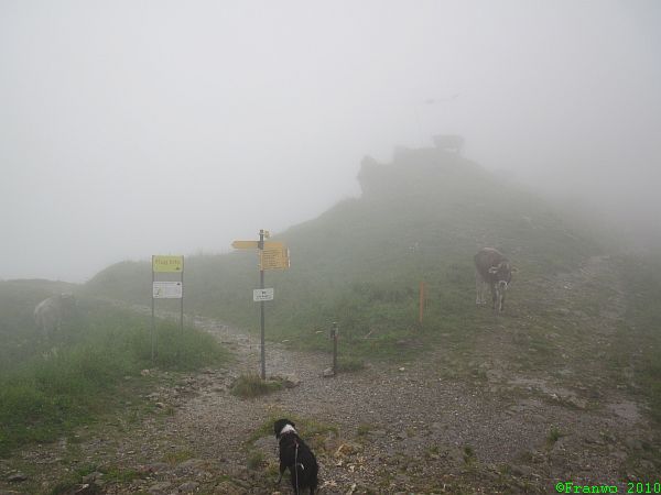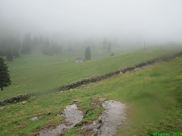 Die Route führt 1104 Höhenmeter über die Alp Bützel, dem direktesten Anstieg aus dem Rheintal, hinauf zum Kastensattel. Dort geht es links noch ca. 150 Höhenmeter,hinauf zum Hohen Kasten mit dem Drehrestaurant und der Bergstation der Seilbahn aus dem Appenzell. Mein Weg führte mich rechts auf dem Kamm, von wo normalerweise eine fantastische Aussicht auf das Appenzell, den Alpstein, Bodensee und in das Rheintal ist, zur Oberen Kamor Alp und weiter hinunter zur Alp Lenziwis. Hier folgte ich der Wegweisung nach Rüthi.