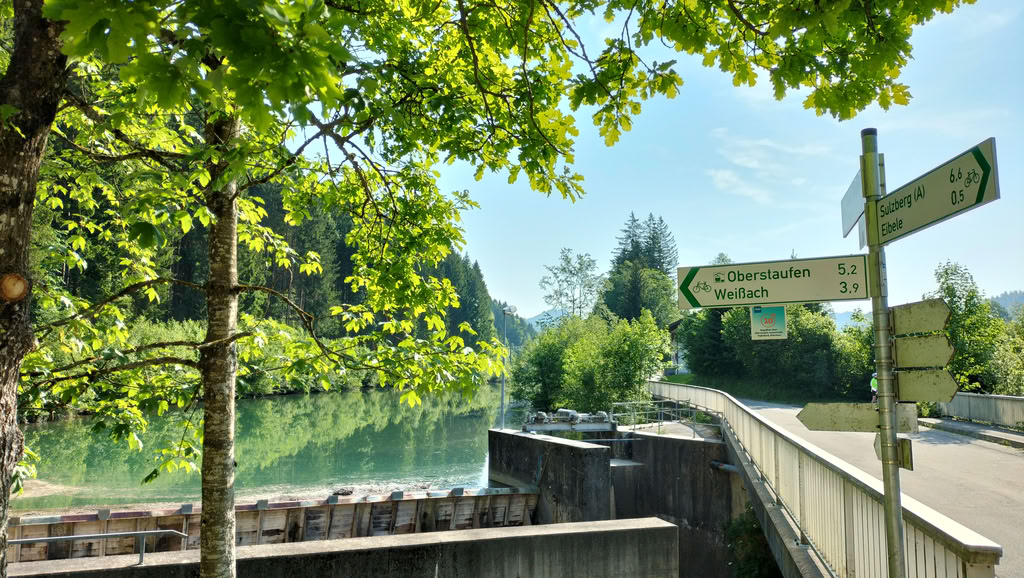 Ab der Oberzollbrücke folgt man entspannt dem Lauf der Iller bis nach Immenstadt. Hier lädt der Alpsee zu einer wohlverdienten Pause ein – mit herrlichem Blick auf das Wasser und die umliegenden Berge.