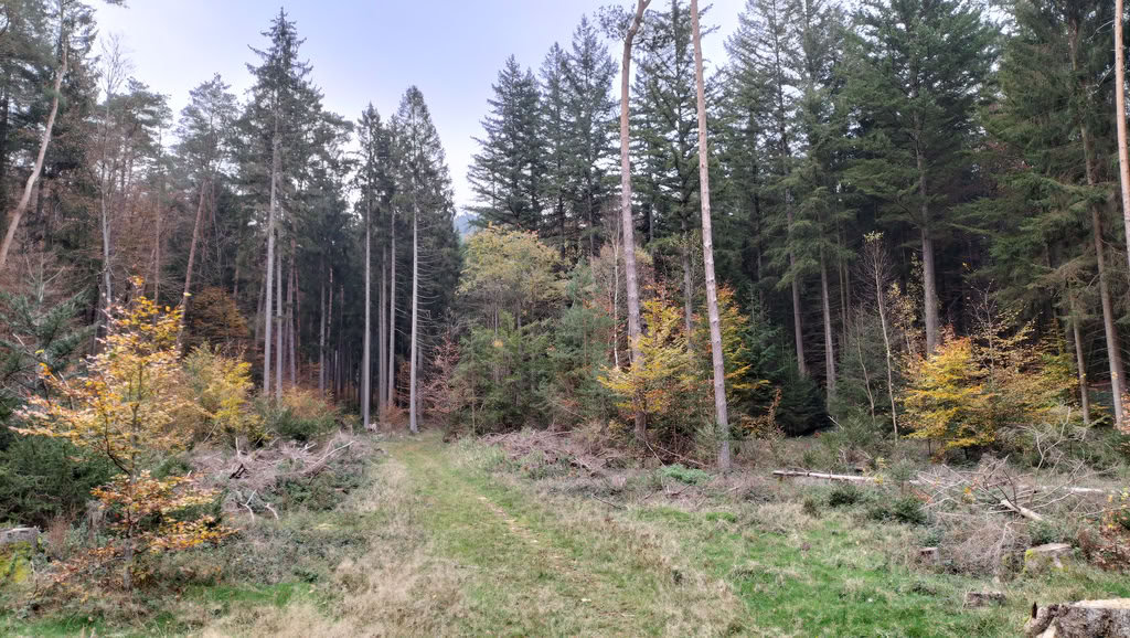 Um die 35 Kilometer lange Originaletappe abzukürzen, fuhr ich mit dem Zug nach Münchweiler an der Rodalb. Die App Bergfex empfahl mir eine Route durch die Kernzone des Biosphärenreservats – und es hat sich absolut gelohnt! In diesem Bereich wird die Natur sich selbst überlassen, was eine besondere Wildnisatmosphäre schafft. Auf den alten Forstwegen lag auch mal ein Baum quer, was die Wanderung zusätzlich abenteuerlich machte. Nach etwa 12 Kilometern stieß ich am Luitpoldturm wieder auf den Pfälzer Waldpfad.