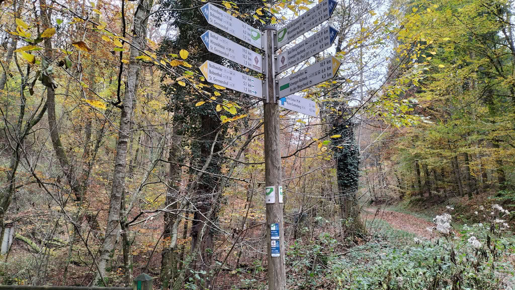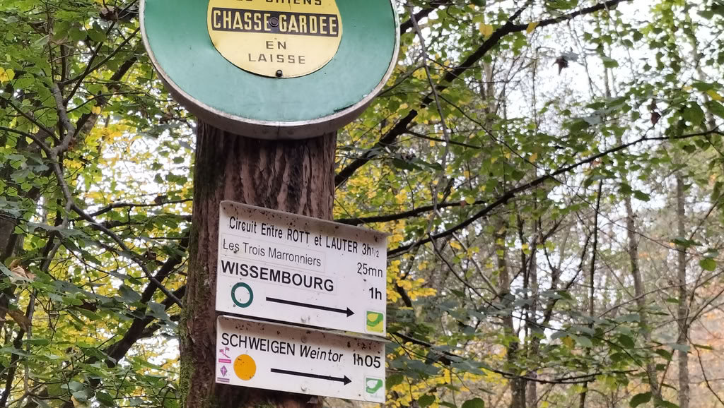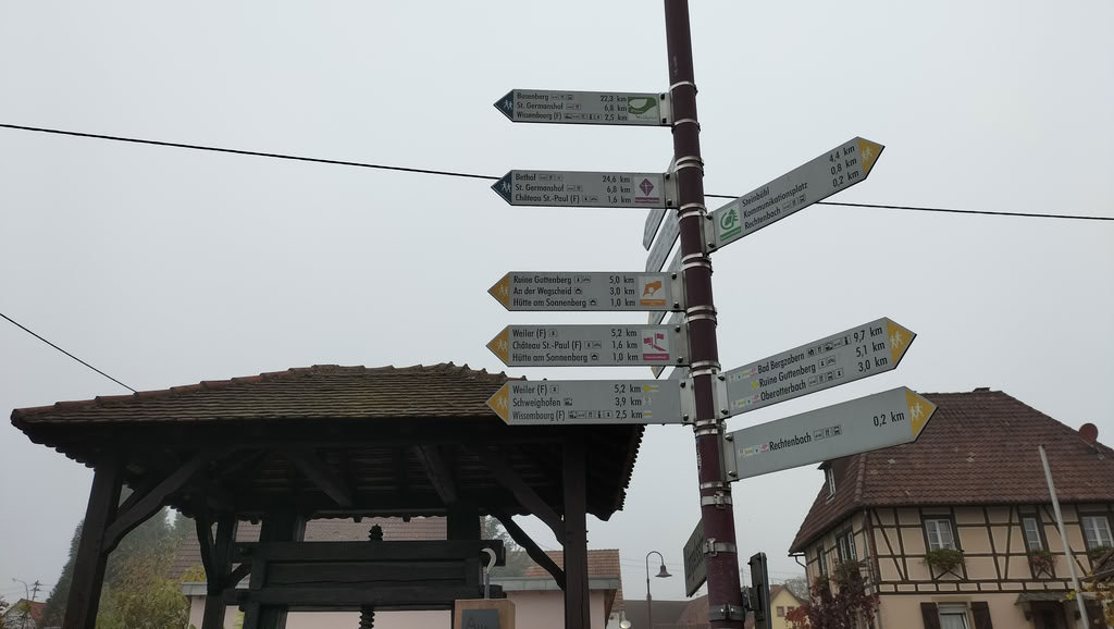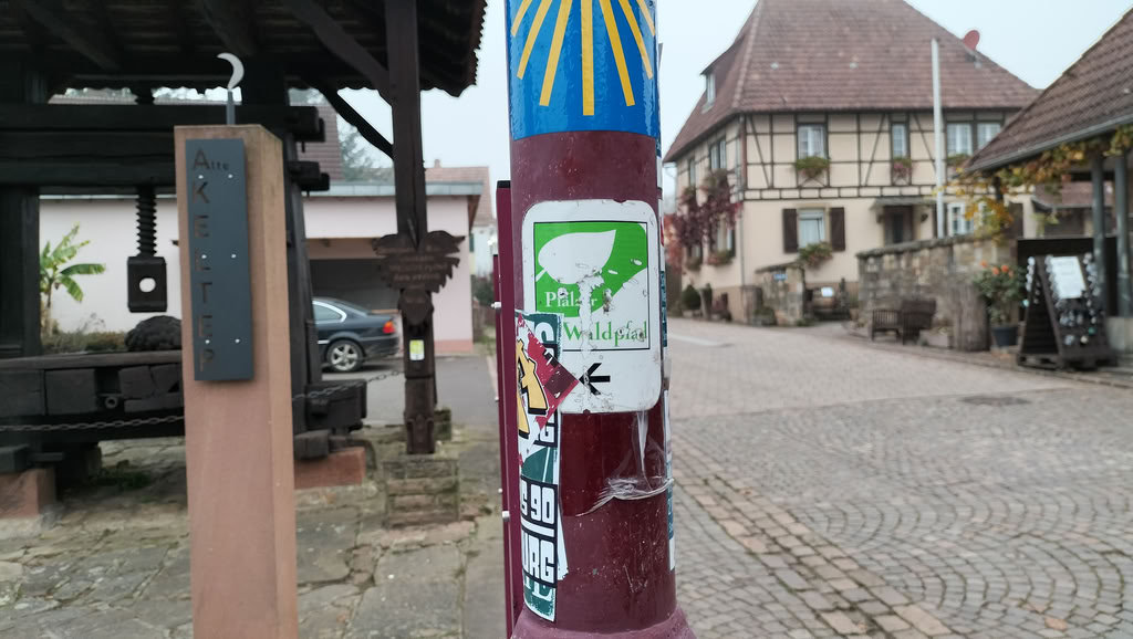 Auf dieser letzten Etappe des Pfälzer Waldpfades überschreitet man die Grenze nach Frankreich. Zunächst ging es für mich zurück nach Erlenbach, wo ich wieder auf den Waldpfad traf. Bei St. Germanshof erreichte ich die französische Grenze und folgte dem malerischen Grenzweg eine ganze Weile. Schließlich führte der Weg in die Weinberge deutscher Winzer auf französischem Boden – eine interessante Feststellung. Das Deutsche Weintor in Schweigen-Rechtenbach war danach schnell erreicht und markierte den offiziellen Abschluss meiner Wanderung auf dem Pfälzer Waldpfad.