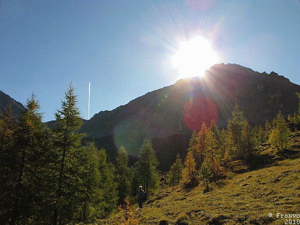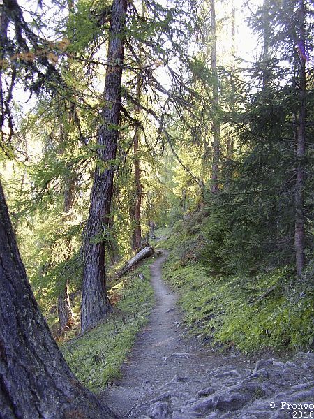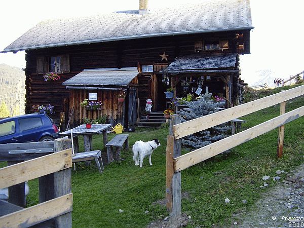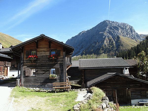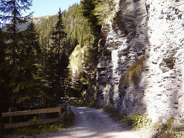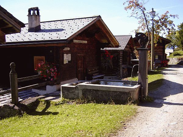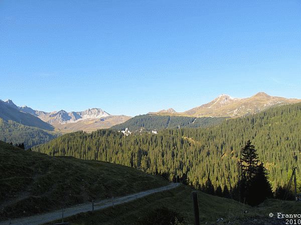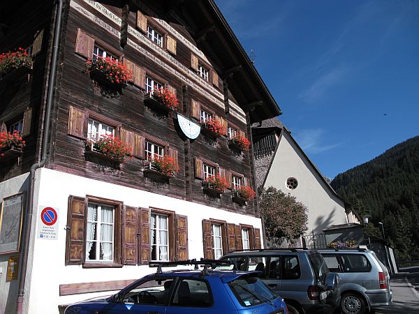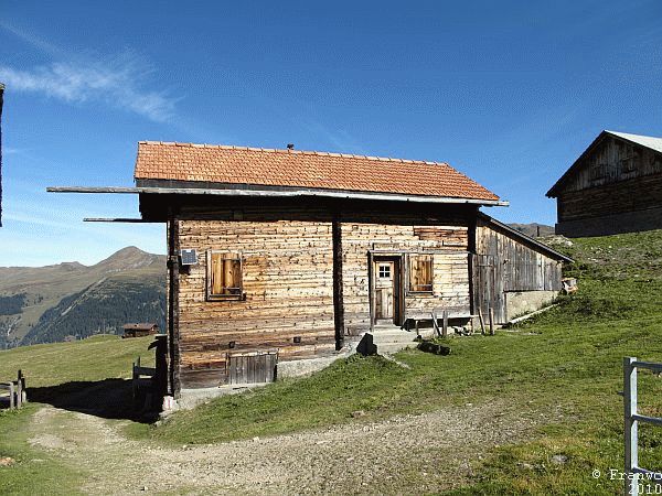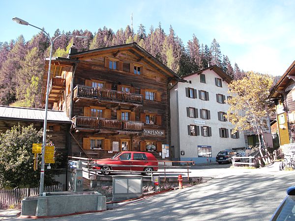 Im Berggasthaus Heimeli ist laut Führer die erste Etappe des Schanfigger Höhenweg zu Ende. Von hier aus geht es auf dem Güterweg hinunter zum Bahnhof Langwiess, vorbei am alten Walserdorf Dörfji.