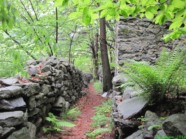 Der Wanderweg war in unsere Richtung nicht immer ganz einfach zu finden. Wir hatten den Eindruck, dass er in die Gegenrichtung besser beschildert war. Dennoch haben wir trotz tief hängender Wolken eine abwechslungsreiche Etappe vorgefunden. Die Orte und Wälder boten viel Abwechslung. Ein Höhepunkt war sicherlich die Wegführung im Untergrund von Villa di Chiavenna durch das Waschhaus und den Gewölbegang in das untere Dorf. Die Wege in den Kastanienwäldern, welche die gesamte Etappe bestimmten, sind ebenfalls ein Highlight. Kurz vor Chiavenna ändert sich das Landschaftsbild durch die geschliffenen Felsgiganten. Dahinter weitet sich das Tal und Chiavenna beginnt unmittelbar danach.
