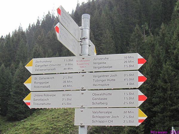 Von Gargellen gelangt man durch das herrliche Valzifental auf dem Güterweg bis zur oberen Valzifenalp, dann geht es auf einem Bergpfad hinauf zum Schlappiner Joch. Nach dem Joch geht es steil hinunter nach Schlappin, wo zwei urigen Gasthäuser für das leibliche Wohl sorgen. Frisch gestärkt geht es auf der Fahrstrasse hinunter nach Klosters Dorf, wo das erste Hotel unserer Wanderwoche auf uns wartete.
