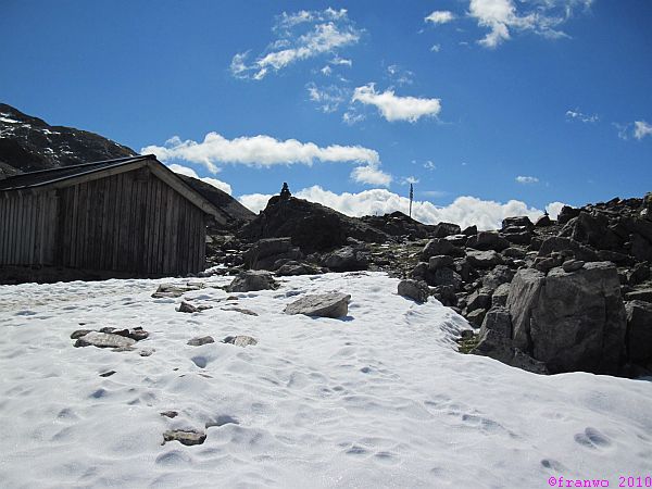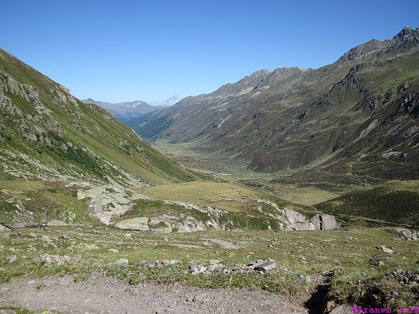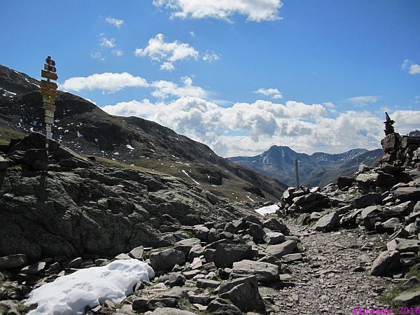 Auf dem Pass dehnen wir unsere Mittagspause aus, so schön ist es! Von diesem Punkt aus sieht man nur das Hochgebirge. Wälder und tiefe Täler sind nicht zu entdecken. Viele Biker kommen über den Pass und und fahren mit erstaunlicher und teilweise auch akrobatischer Bikebeherrschung die steilen und kurvigen Bergpfade auf teilweise nur einem Rad herunter - respekt! Uns kostet das auf jeden Fall keinen Eintritt und wir geniessen es.