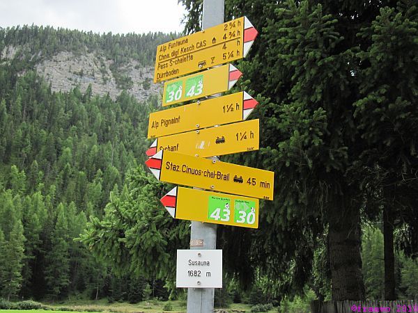 Leider hatte die einzige Einkehrmöglichkeit in Susauna am Montag Ruhetag, so entschlossen wir uns direkt nach S-chanf über den Wanderwag 'Via Engadina' zum Hotel zu gehen.