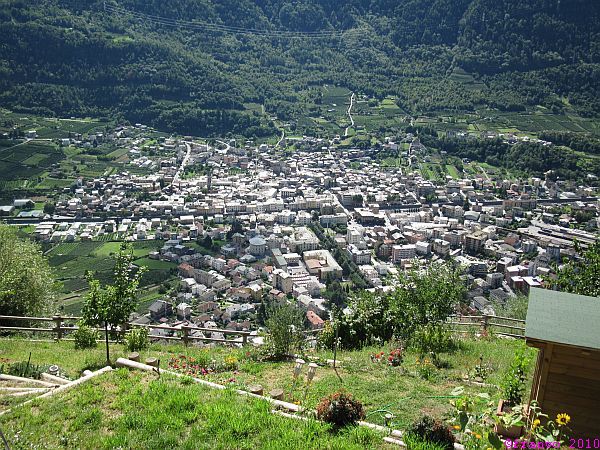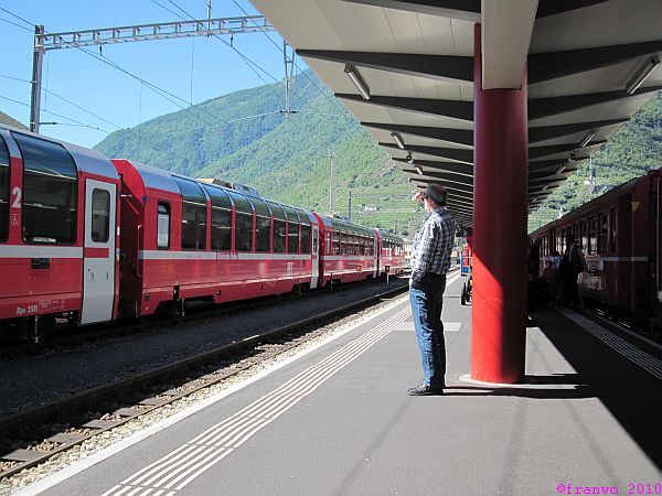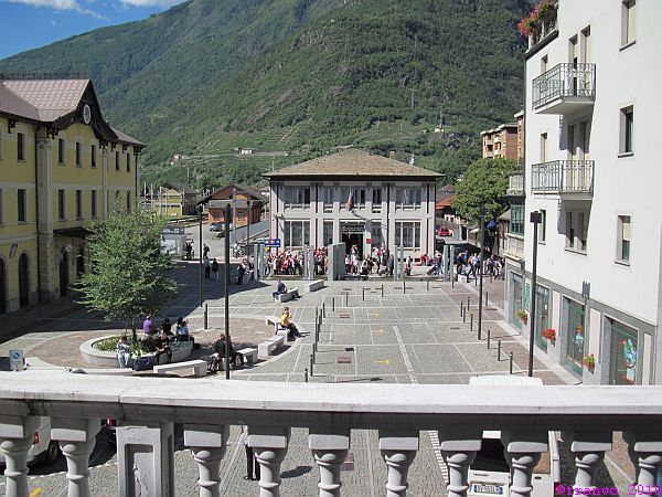 Unser Hotel liegt direkt am Bahnhof. Auf der Terasse vor unseren Zimmern geniessen wir den Veltliner Wein und sehen dem Treiben auf dem Bahnhofsplatz zu. Nach dem Abendmenü machen wir einen ausführlichen Rundgang durch die Altstadt von Tirano. Hier entsteht auch die Idee, eine Tour von hier nach Bergamo zu machen - durch die Bergamasker Alpen. Die Planung läuft für 2011!